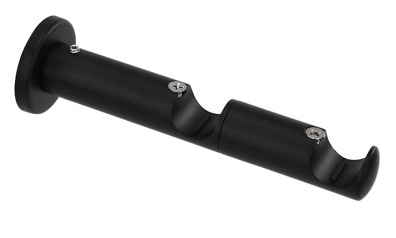 Schwarz matt, Grau metallic matt, Edelstahl und Gold antik erhältlich. Der Träger hatt einen Wandabstand von 75/135mm und ist für die Montage als Innenlaufsystem (hängend) und als Gardinenstange (liegend) mit Gardinenringen konzipert.