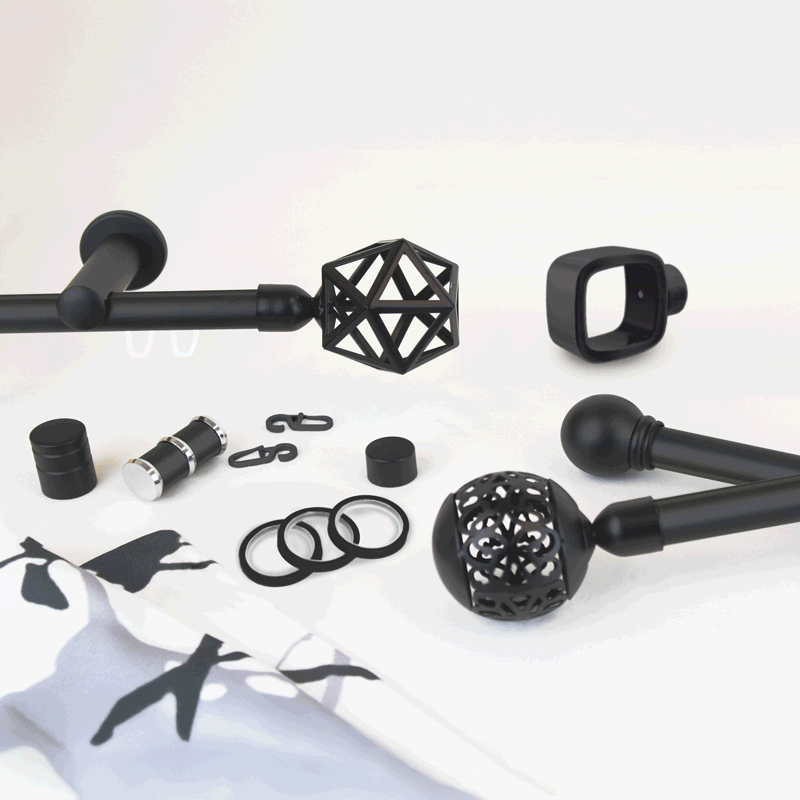 Die Stilgarnitur ist in vier verschiedenen Farben erhältlich: Schwarz matt, Grau metallic matt, Edelstahl und Gold antik. Die AMARO Stilgarnitur ist einfach zu installieren und wird Ihre Gardinen perfekt ergänzen. Wählen Sie die Farbe, die am besten zu Ihrer Einrichtung passt und verleihen Sie Ihrem Raum einen modernen Look.