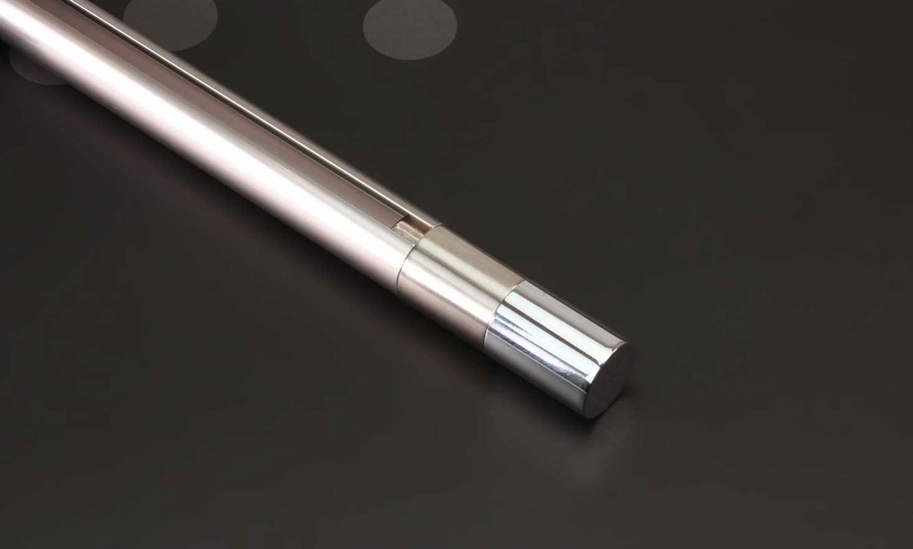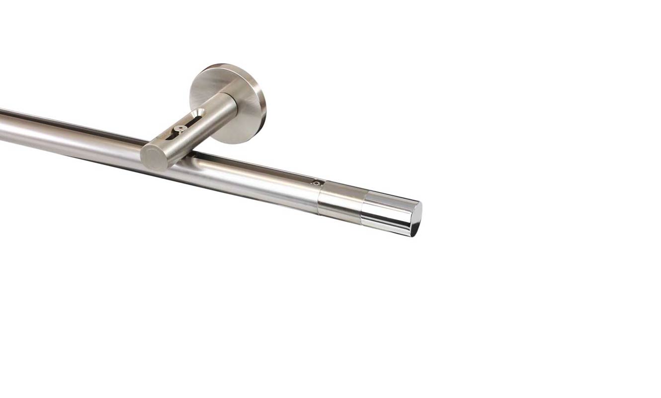 Zwei farbiges Design-Endstück 09 aus Nickel matt / Crom für Gardinenstangen mit Ø20mm aus der Ohio Serie.