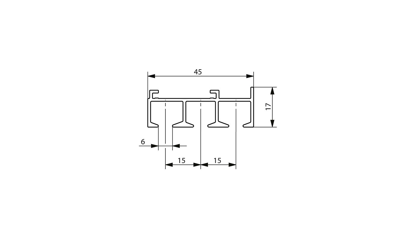 Produktinformationen "System 1200 Flächenschiene | 3 läufig | Aluprofil 45x17mm | Weiß"