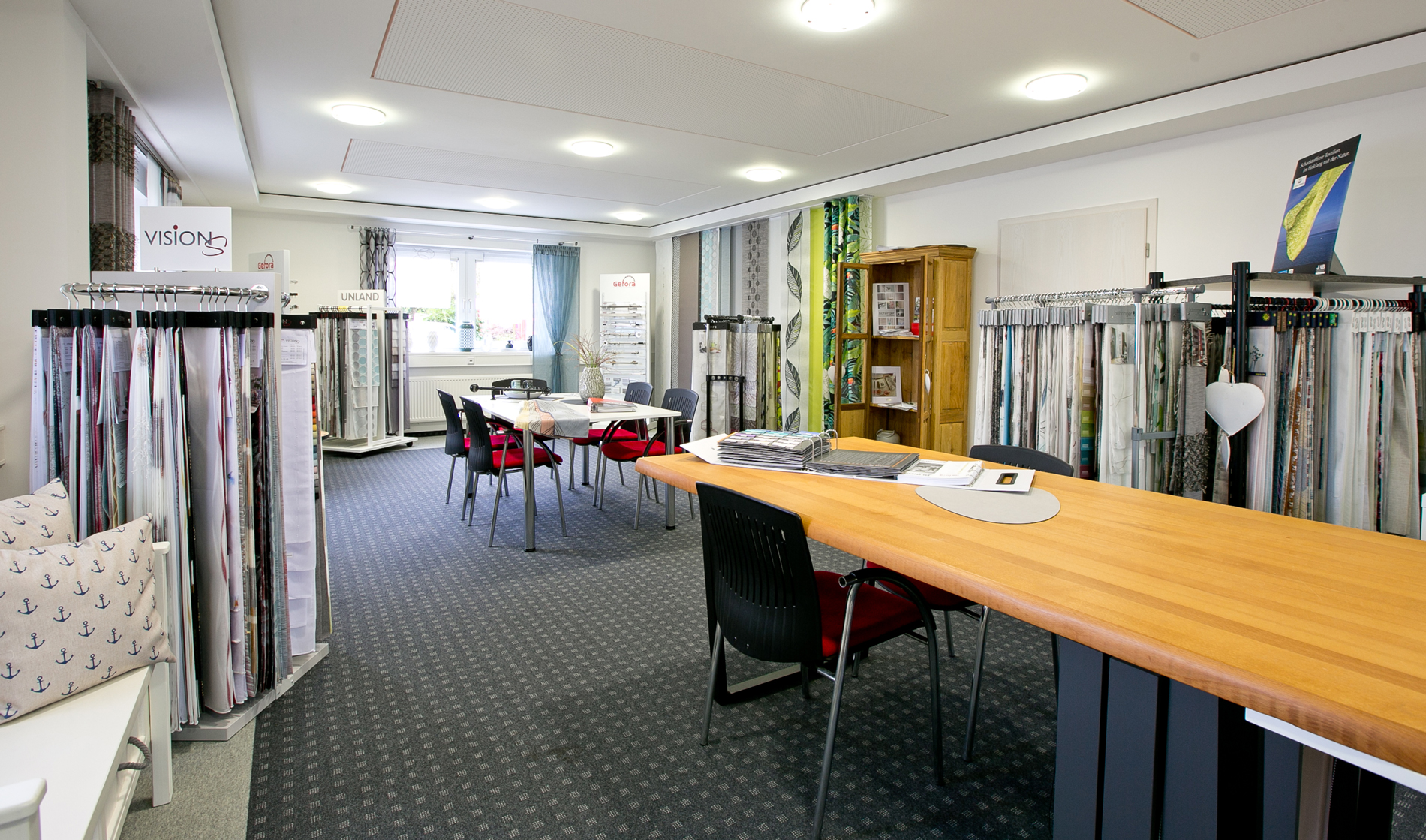 - Ausstellungsraum und Musterstoffe